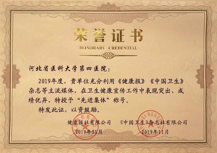 11月12-15日,健康报社在海南省陵水县举办了“华北、东北片区卫生健康宣传工作通联会议”,会上表彰了2019年度卫生健康宣传先进集体和先进个人,我院被授予“先进集体”荣誉称号,河北省仅两家医院获评。