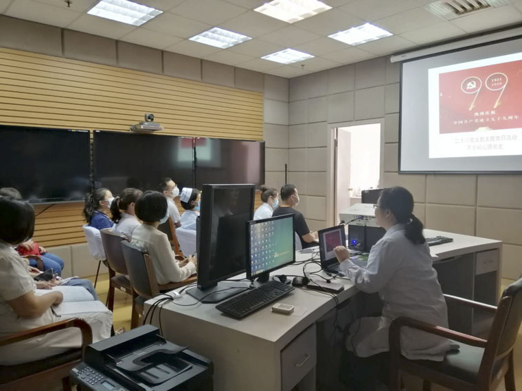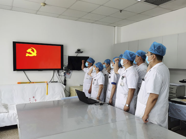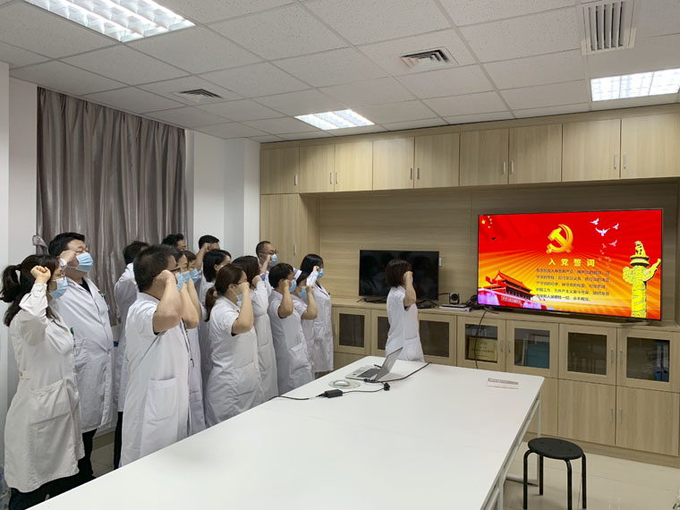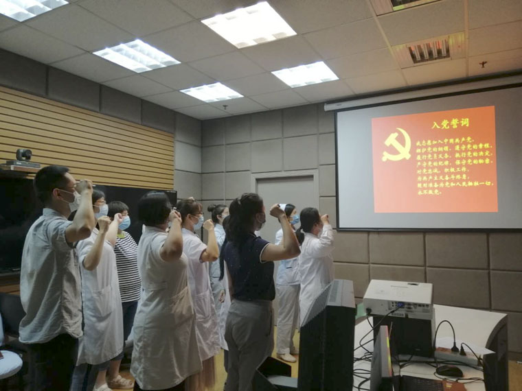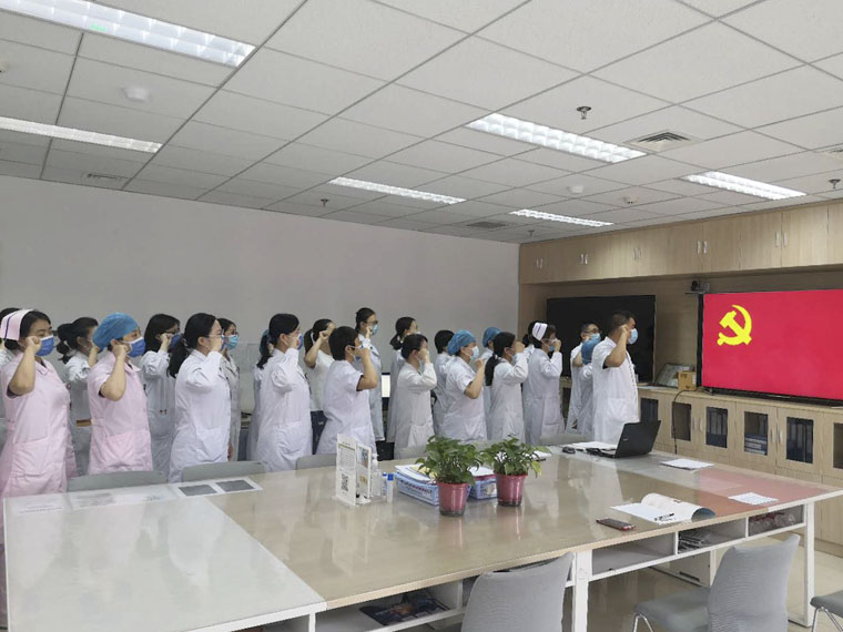 在党的九十九周年华诞到来之际,我院党委组织开展了“迎七一 守初心 重温入党誓词”主题党日活动,纪念我们党栉风沐雨近百载,带领中华民族迈向伟大复兴的光辉历程。医院各支部高度重视、认真组织、积极参与,以创新的形式、丰富的载体,开展党员教育,重温入党誓词。通过主题党日活动,使党员的党性修养进一步提升,理想信念更加坚定。