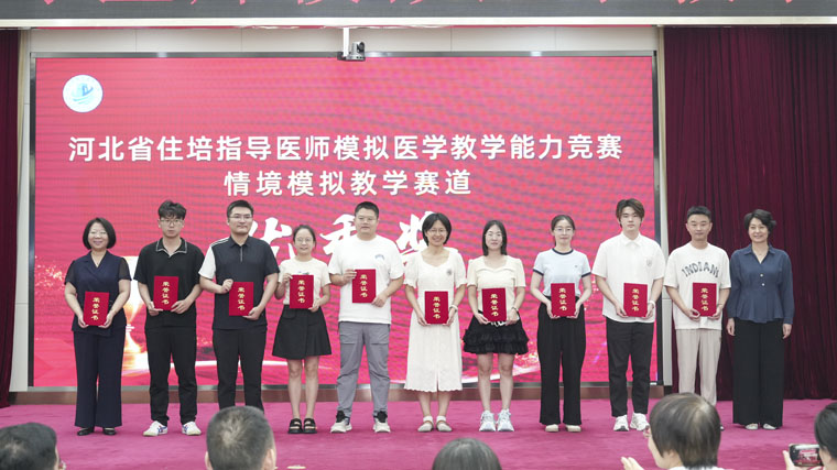近日,由河北省卫生健康委员会指导,河北省医院管理学会主办,模拟医学专业委员会承办,河北省医学会全科分会和河北省医师协会全科分会协办的“AI助力全科医学发展研讨会暨河北省住培指导医师模拟医学教学能力竞赛”在石家庄召开。我院全科医疗科凭借创新的教学设计和扎实的临床实践能力,从全省20余家参赛单位中脱颖而出,斩获佳绩。张文哲主治医师团队报名参加操作性技能教学赛道,在22家基地报送的34个参赛视频激烈角逐中,荣获一等奖,并将代表河北省参加即将由中国医师协会主办的全国性竞赛;韩若琦主治医师团队在16家基地报送的27支情境模拟参赛队伍中表现优异,现场发挥从容稳定,获得优秀奖。
